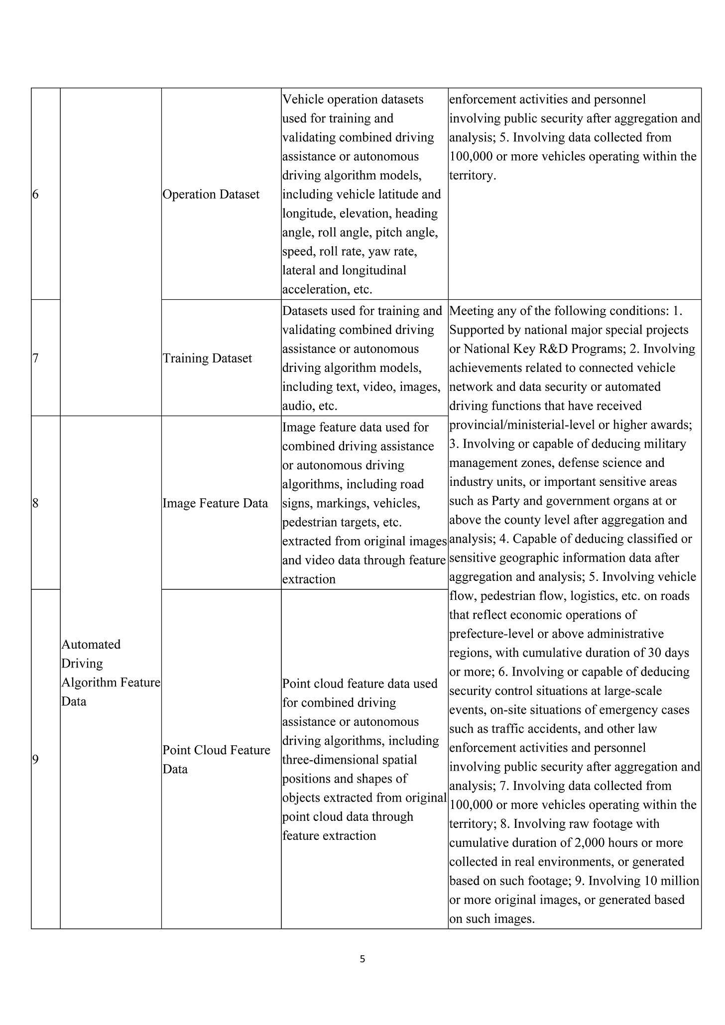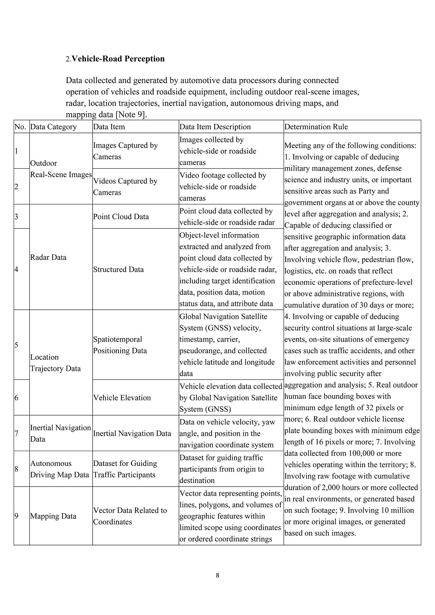 Note 9: Geographic information data containing spatial position coordinates, such as location trajectory data, autonomous driving map data, and mapping data, shall be processed using geographically information confidentiality processing technologies recognized by the state.