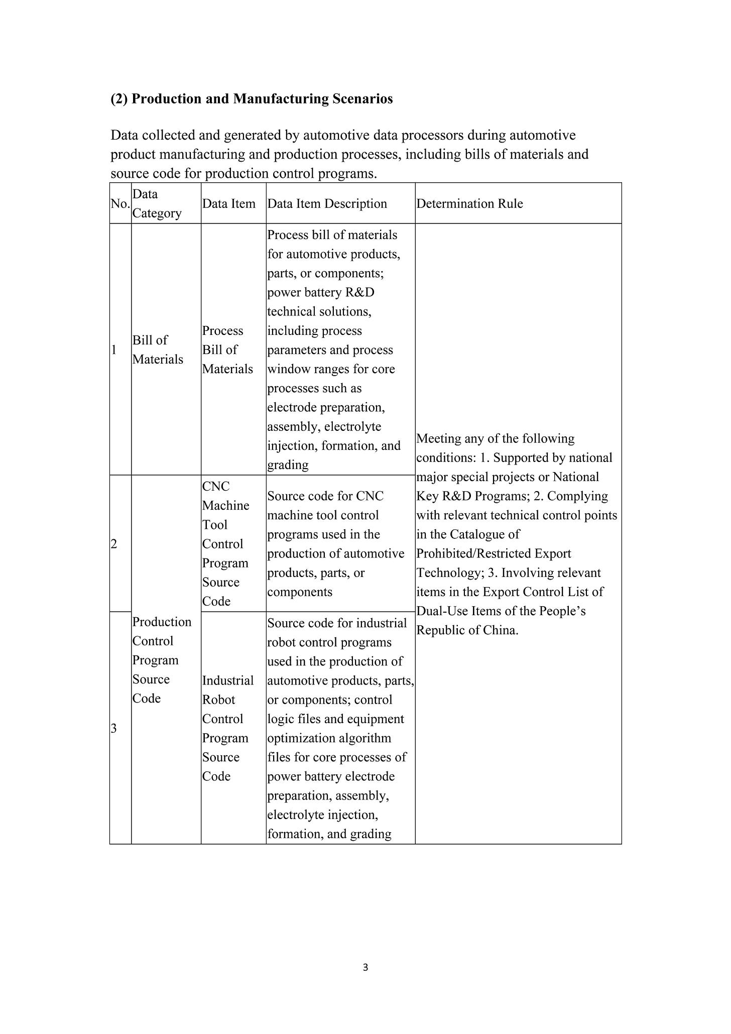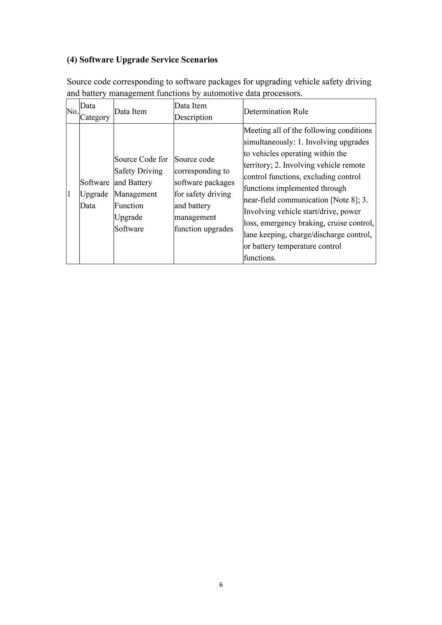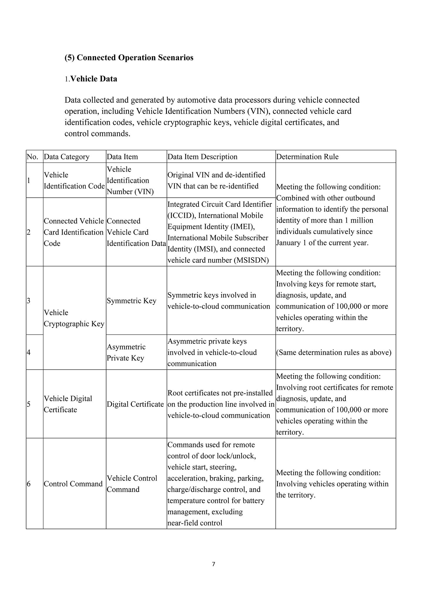 (1) Automotive data collected and generated outside the territory is transmitted to the territory for processing and then provided to outside the territory, and no personal information or important data from within the territory is introduced during the processing;