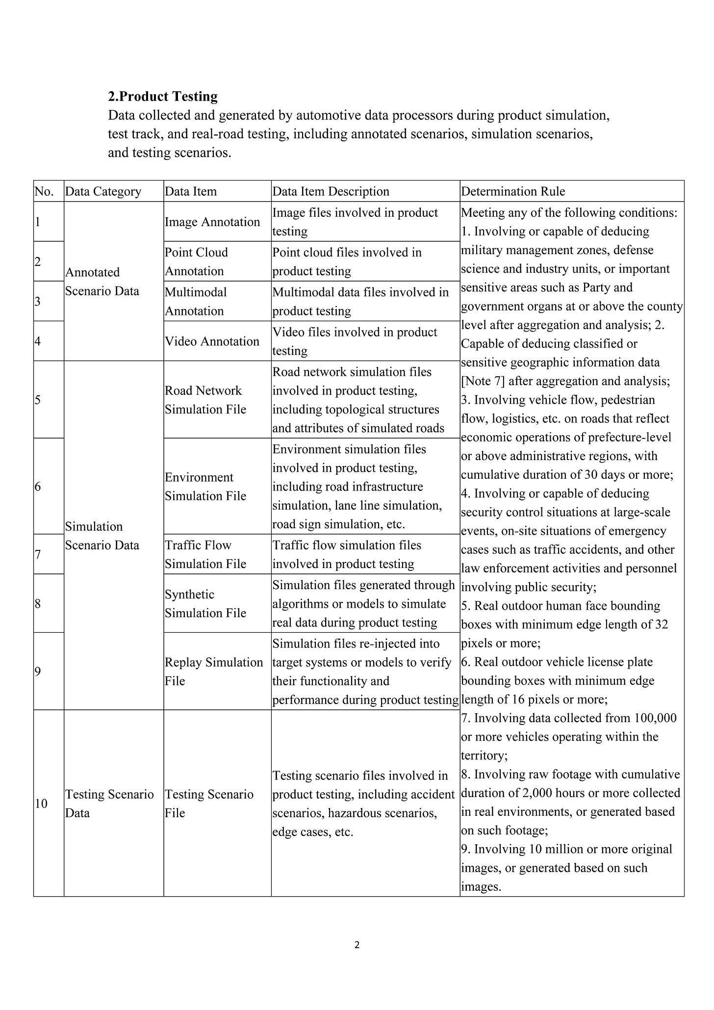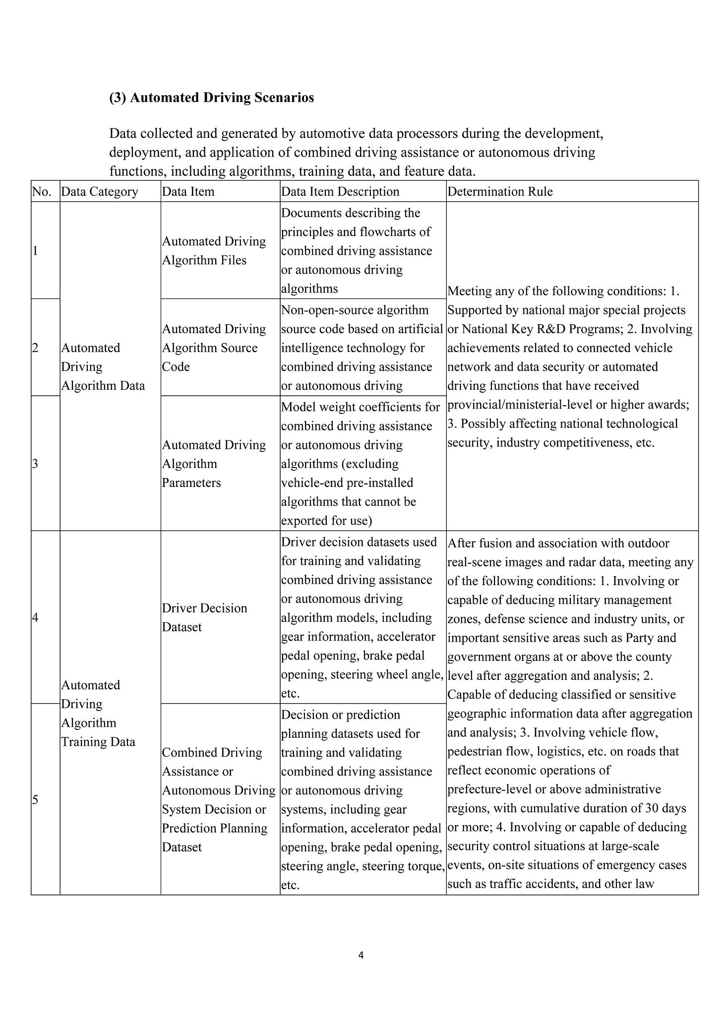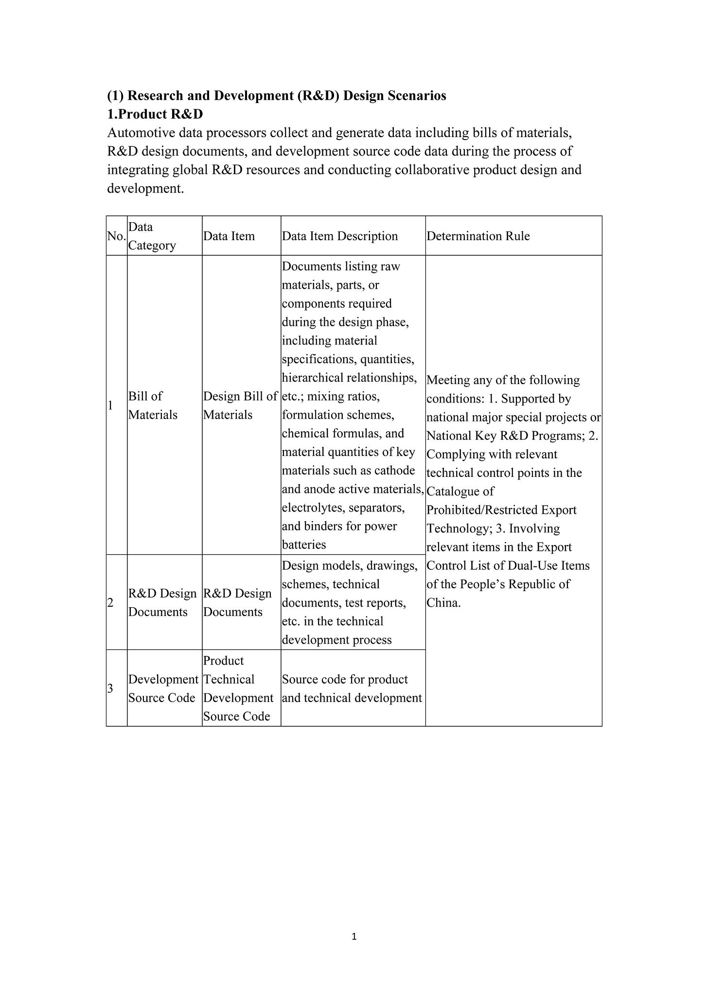 (1) Automotive data collected and generated outside the territory is transmitted to the territory for processing and then provided to outside the territory, and no personal information or important data from within the territory is introduced during the processing;