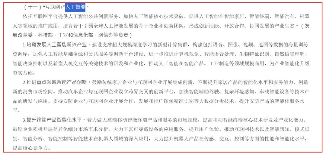 Back in 2015, the Chinese government first put forward the “Internet Plus” strategy. That year is widely seen as the first year of “Internet Plus” in China. In the 2015 policy paper, AI was just the 11th sub-item under “Internet Plus.”