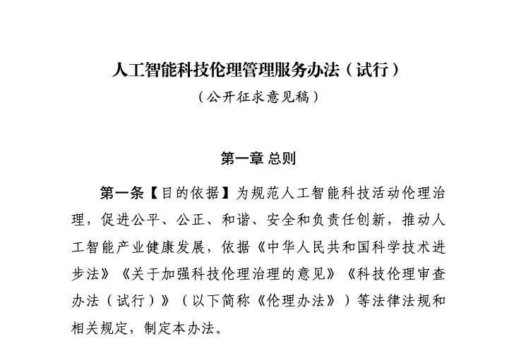 In order to regulate the ethical governance of artificial intelligence (AI) science and technology activities, promote fairness, justice, harmony, safety, and responsible innovation, and facilitate the healthy development of the AI industry, these Measures are formulated in accordance with the Law of the People’s Republic of China on Progress of Science and Technology, the Opinions on Strengthening the Governance of Science and Technology Ethics, the Administrative Measures for Science and Technology Ethics Review (Trial) (hereinafter the “Ethics Measures”), and other relevant laws, regulations, and provisions.