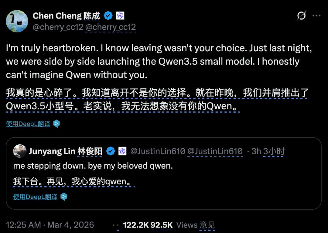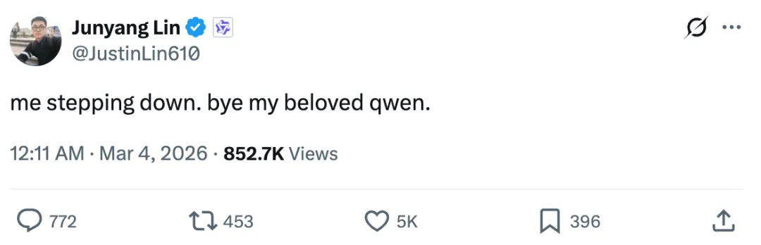 In the early hours of Wednesday, March 4, Lin Junyang, the technical lead of Alibaba’s Qwen team, suddenly posted a message on social media: “me stepping down. bye my beloved qwen.”