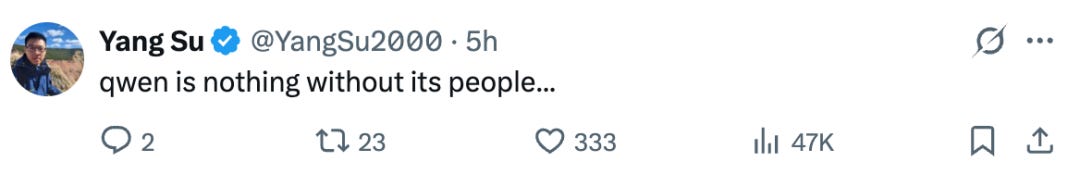 Several people close to the matter told us that Lin’s departure came as a surprise. “There’s a sense of regret,” one said. “It’s bittersweet. He really loved Qwen.”