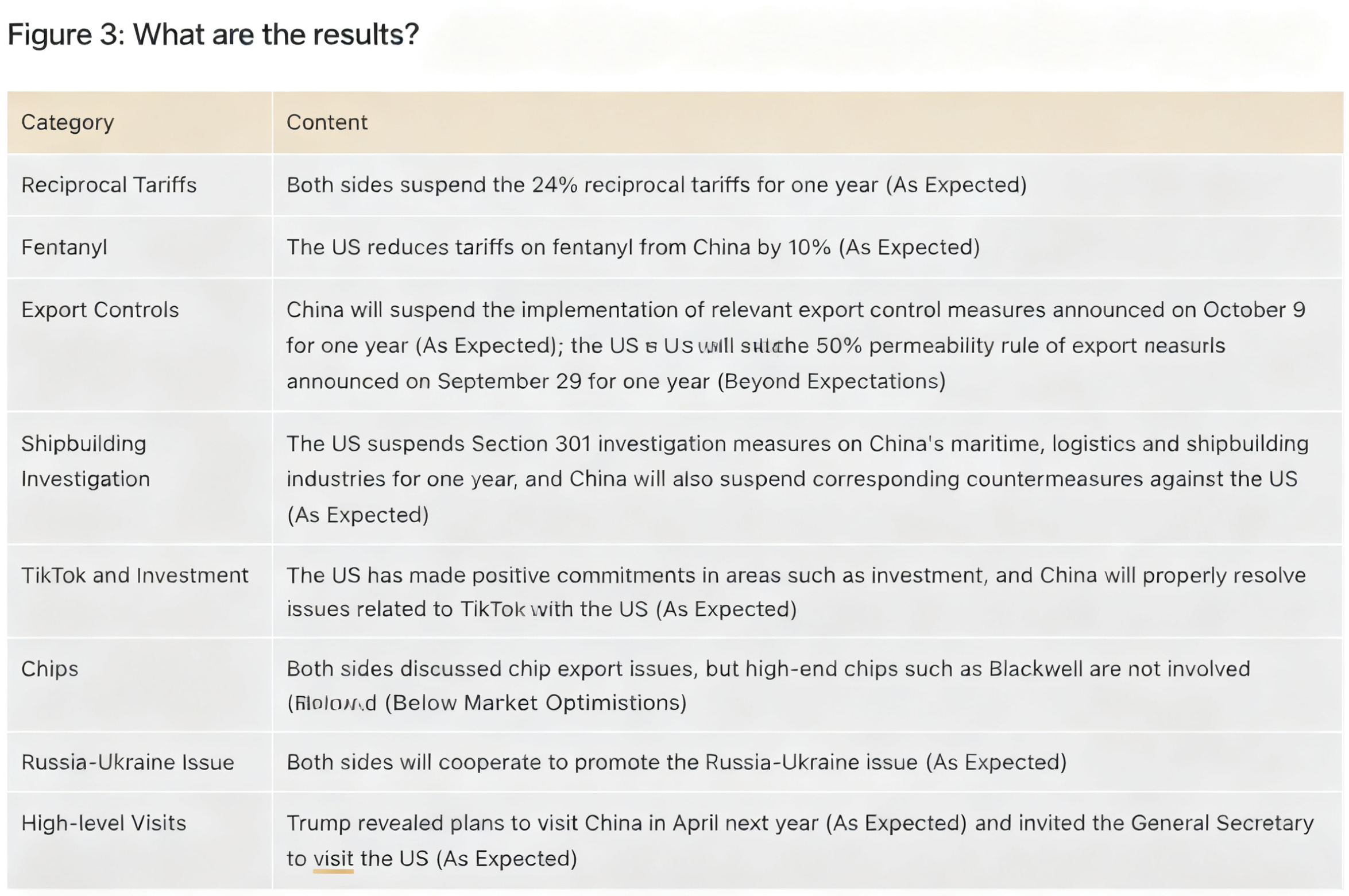 On Fentanyl: The U.S. tariffs on Chinese fentanyl-related products consist of two parts: a 10% tariff announced on February 1 and another 10% tariff announced on March 3. China’s countermeasures differ for the two rounds of tariffs. The removal of tariffs and adjustment of countermeasures on both sides may follow a “rollback” approach — meaning the most recent tariffs will be rolled back first. This time, the U.S. canceled the 10% tariff announced on March 3, and China is expected to adjust the corresponding countermeasures accordingly.